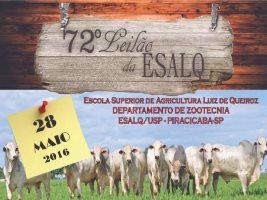As expectativas para o leilão são positivas em relação a 2015, para a 72ª edição do Leilão ESALQ serão postos a venda 30 touros Nelore PO avaliados, filhos do touro Backup, Jamanta e do touro Chango, além de 14 touros da raça Canchim PO e fêmeas Holandesas.