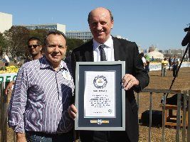 O chefe de gabinete do ministro da Agricultura, Coaraci Castilho, e o secretário de Política Agrícola, Neri Geller, participam da comemoração do Dia do Agricultor, na Esplanada dos Ministérios, em Brasília. A Confederação da Agricultura e Pecuária do Brasil montou uma mesa com produtos agrícolas, com 200 metros de comprimento, certificada como a maior do mundo pelo Guiness World Records.