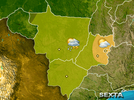 Sol forte e tempo firme no DF e em grande parte de GO. No sudoeste de GO e nas demais áreas também faz sol, mas a partir da tarde pode chover em pontos isolados. Chove a qualquer hora no noroeste do MT.